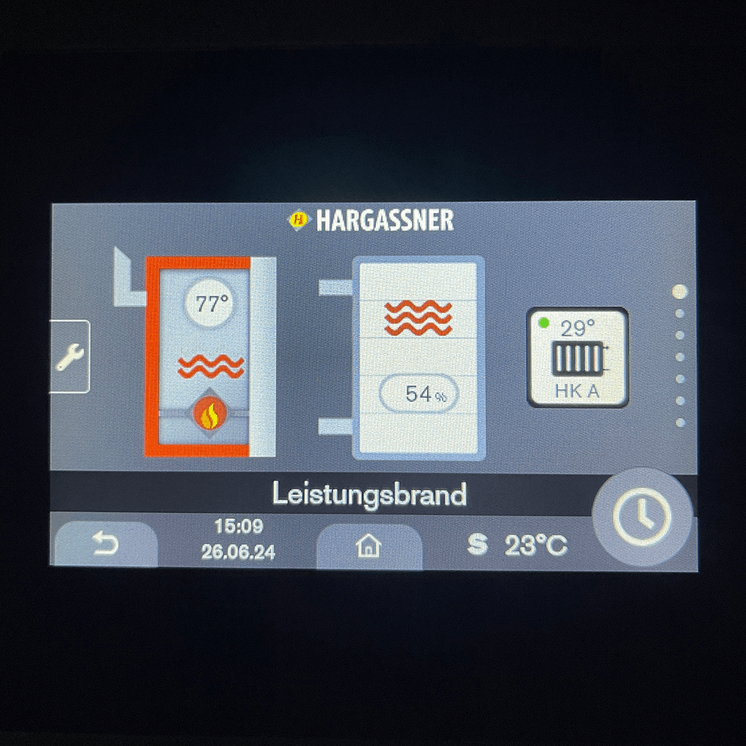 Holzheizungen sind komfortabel. Im Winter wird der Stückholzkessel täglich oder jeden zweiten Tag geheizt. Für Warmwasser kann eine Füllung im Sommer bereits für bis zu 2 Wochen ausreichen. Das Einlegen des Holzes dauert nur wenige Minuten – gezündet wird automatisch.