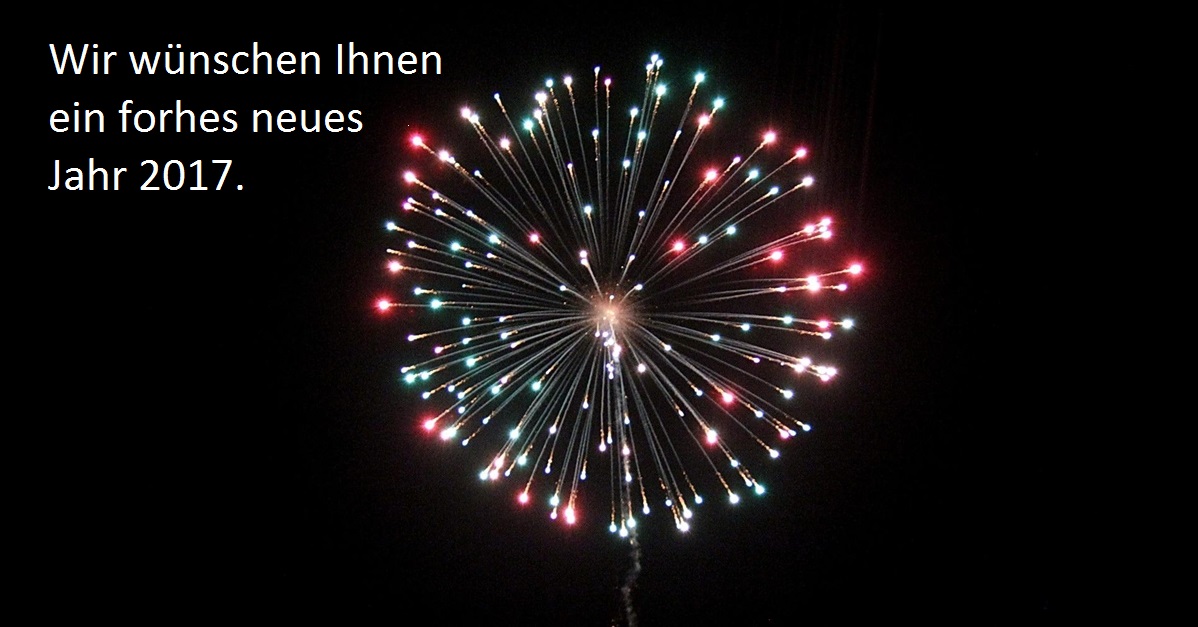 Wir wünschen Ihnen einen guten Start in das neue Jahr 2017 und möchten uns für das vergangene Jahr recht herzlich bedanken.