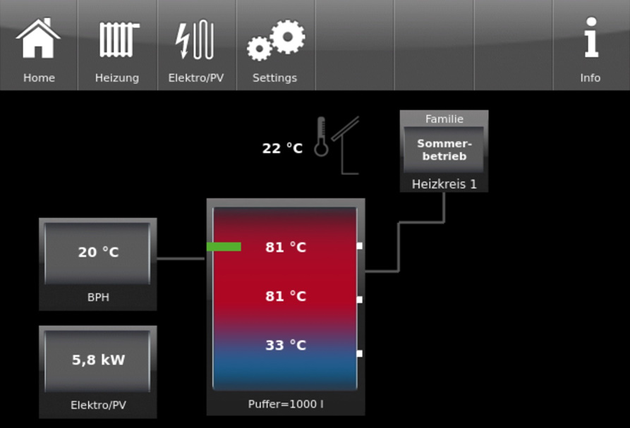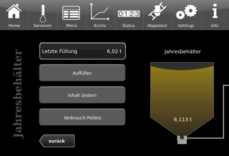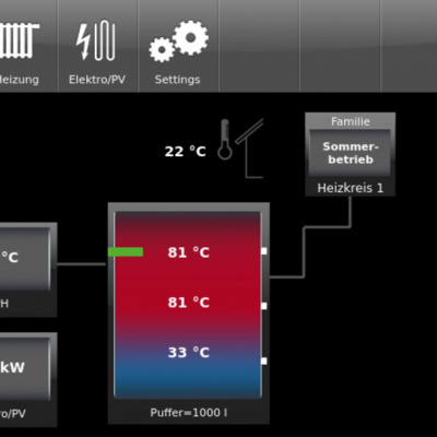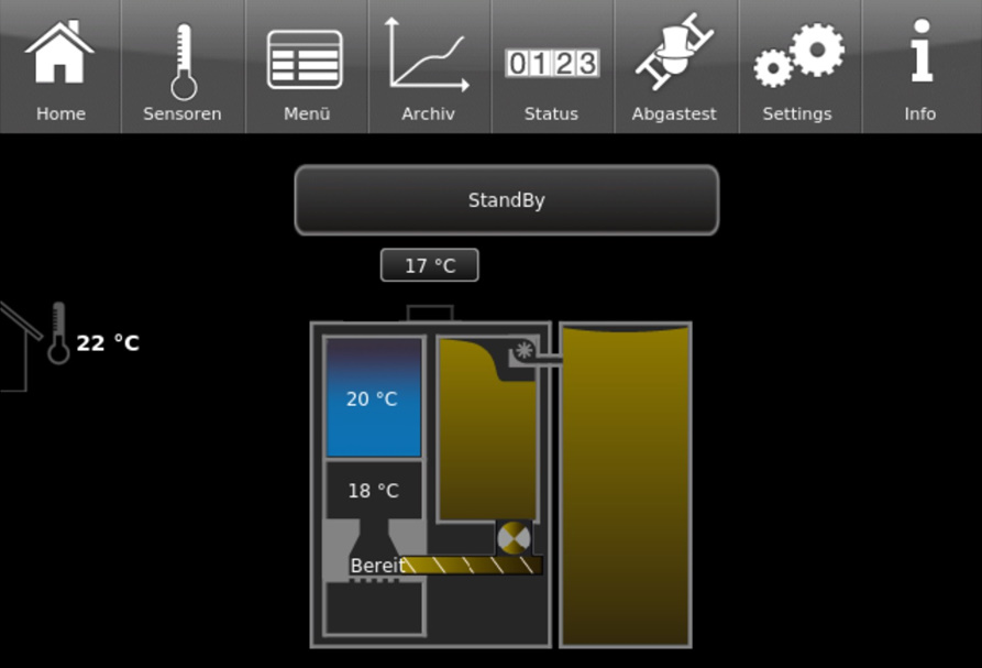 | Anlage: | Brunner BPH 7/24 kW mit 1000 Liter Pufferspeicher, Photovoltaik-Einbindung, Pellet-Gewebesilo und Schönfelder Frischwasserstation |