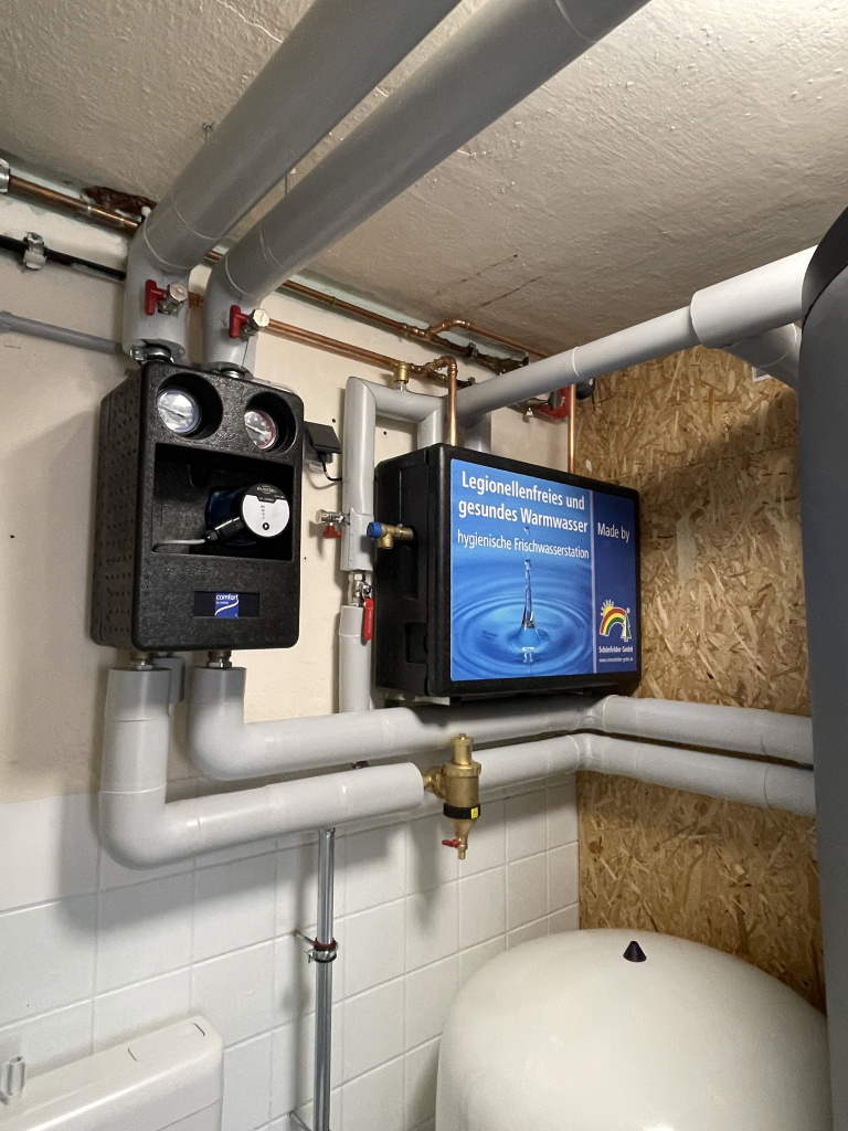 Kombiniert mit unserer Frischwasserwasserstation bereitet die Anlage besonders sparsam und hygienisch Warmwasser auf Abruf zu. So gehören auch die Energieverluste des alten Warmwasserspeichers der Vergangenheit an.