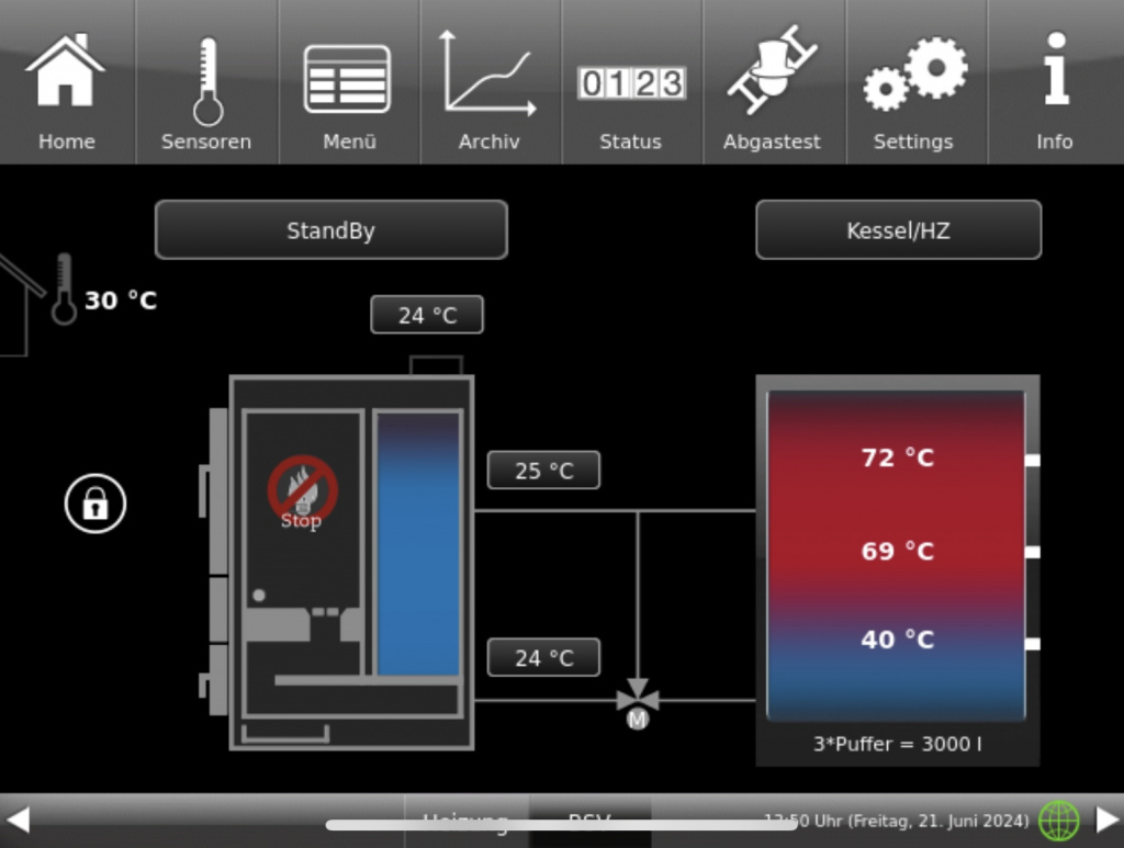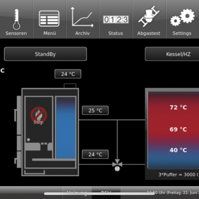 Anlage: Brunner BSV 20 mit elektrostatischem Staubabscheider, 3000 Litern Pufferspeicher und Schönfelder Frischwasserstation