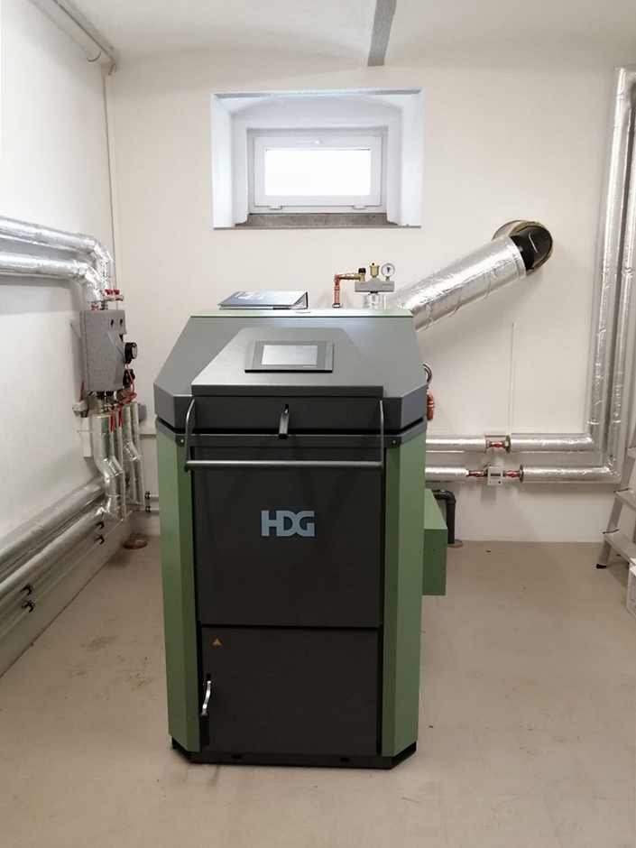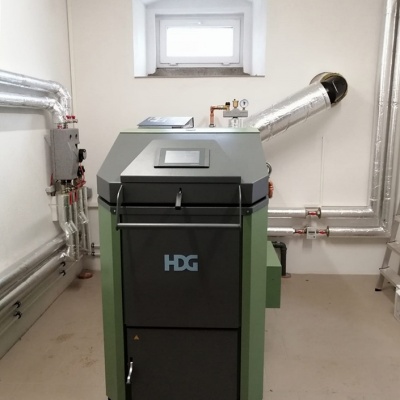 Als Ergänzung zur bestehenden Gas-Heizung steht hier ein HDG Holzvergaser. Der Kessel hat einen großen Füllraum und ist äußerst robust gebaut. Durch den speziellen Aufbau kann man in ihm nicht nur Scheitholz, sondern auch nahezu alle anderen Materialien aus Holz verbrennen.