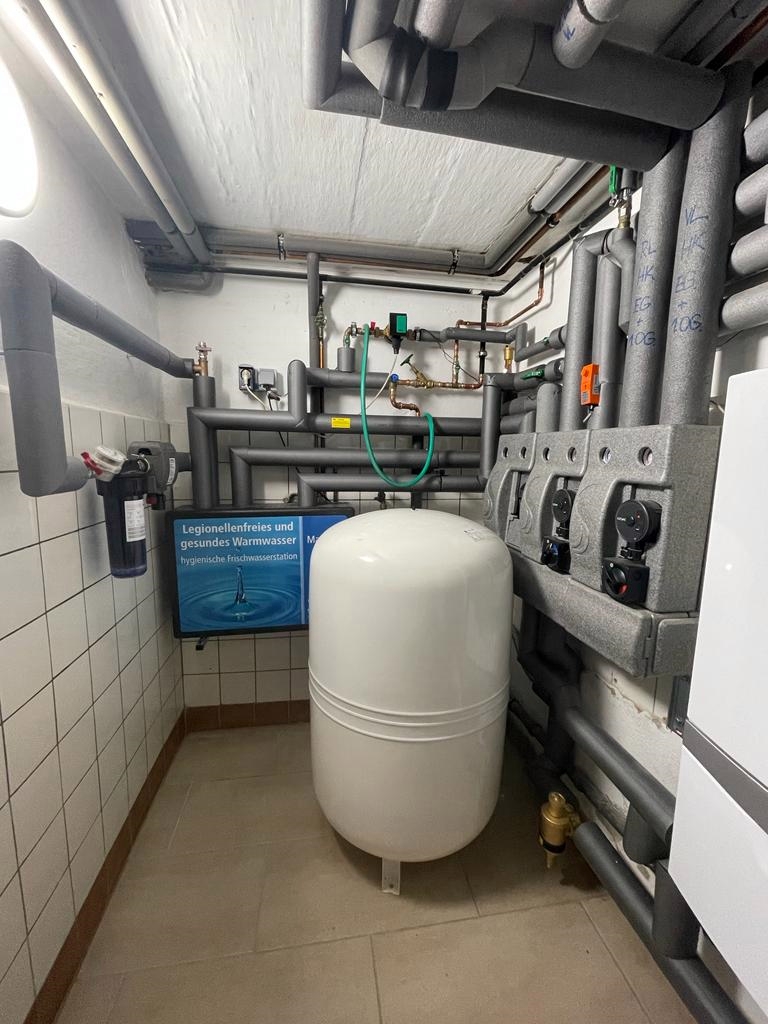 Den erst etwa 2 Jahre alten Warmwasserspeicher haben wir demontiert und gegen eine moderne und hygienische Warmwasserbereitung ersetzt. Unsere Frischwasserstation stellt hier nun stets frisches und legionellenfreies Warmwasser auf Abruf bereit. Nebeneffekt: Die vorhandene Gas-Brennwerttechnik arbeitet effektiver und das Heizen mit Holz wird deutlich komfortabler.