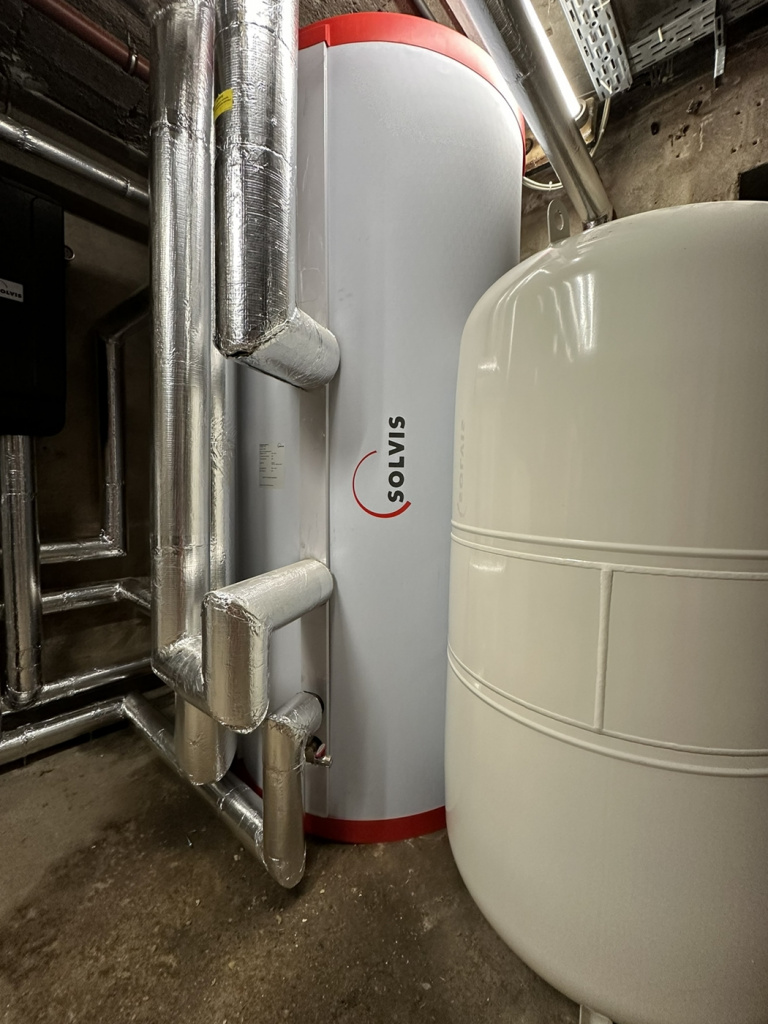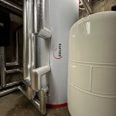 Die verbaute Solarthermieanlage mit 28 m² Kollektorfläche unterstützt Heizung und Warmwasserbereitung. Die Wärme gelangt hierbei im SolvisStrato-Schichtenspeicher genau an die Stelle, wo sie benötigt wird.