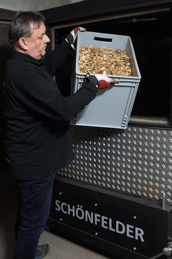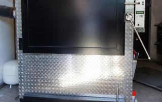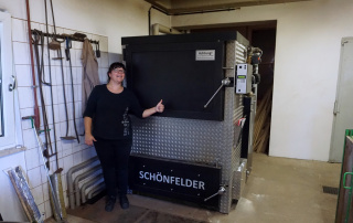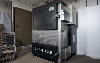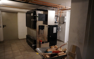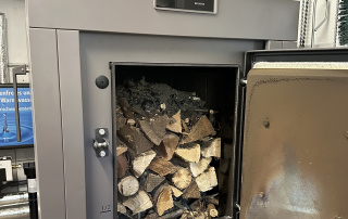 Die Holzheizung dient uns in diesem Objekt zur Verbrennung von naturbelassenem Rest- und Altholz, welches wir kostenfrei erhalten. Durch die große Fülltür können wir kaputte Holzpaletten bis zu einer Größe von 1200 x 1000 mm unzerteilt verbrennen. Neben Meterscheitholz wird auch anfallendes Hackgut verbrannt. Durch den großen Füllraum des Kessels kann so unser Lagergebäude bequem beheizt werden.