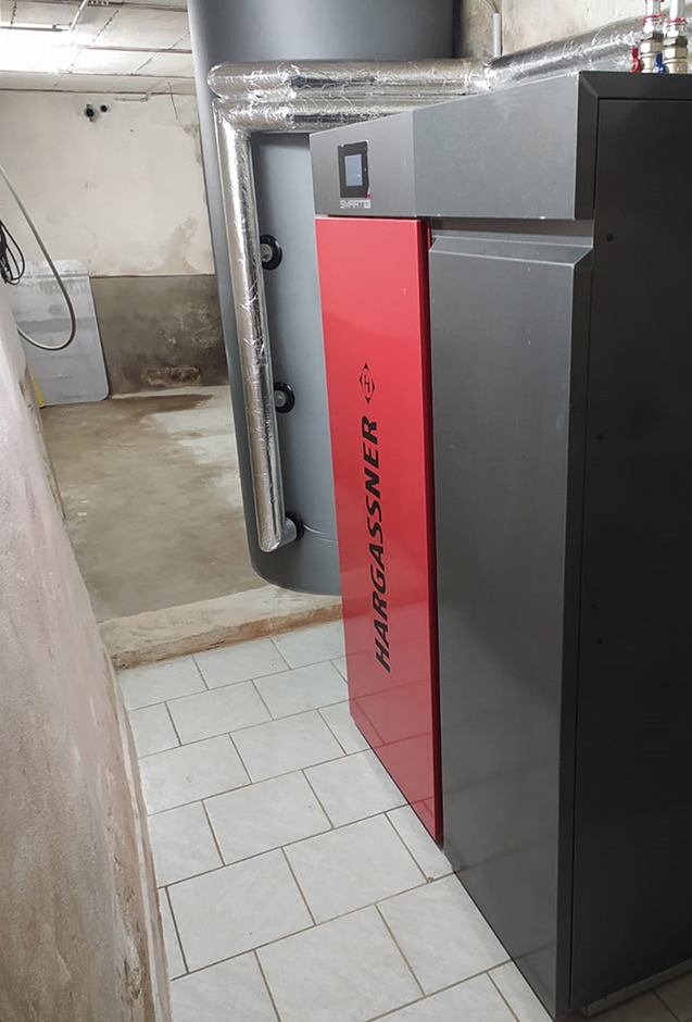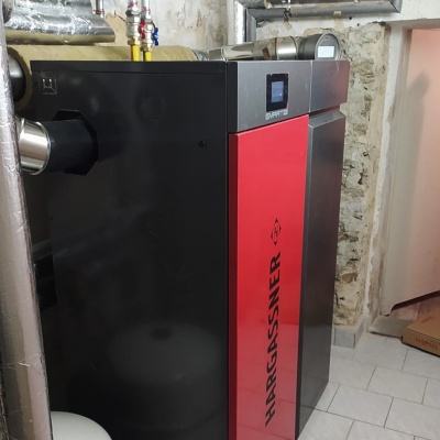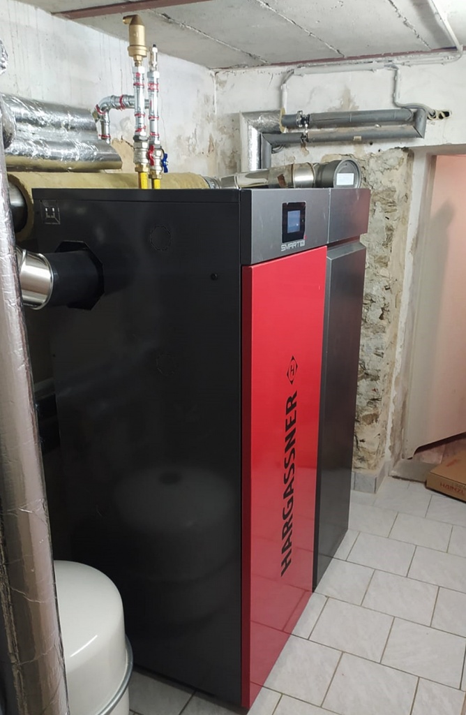 Hier wurde ein alter Ölkessel gegen einen effizienten und umweltfreundlichen Pelletkessel getauscht. Der SmartPK von Hargassner findet in den kleinsten Räumen Platz, da er an 3 Seiten wandbündig aufgestellt werden kann. Die Befüllung erfolgt mit Sackware in den großzügigen Vorratsbehälter, welcher sich direkt am Kessel befindet. So kann komfortabel geheizt, ohne Pellet-Silo oder Lagerraum. Durch die neue Förderung wird diese neue Heizungsanlage mit 45% vom Staat gefördert!