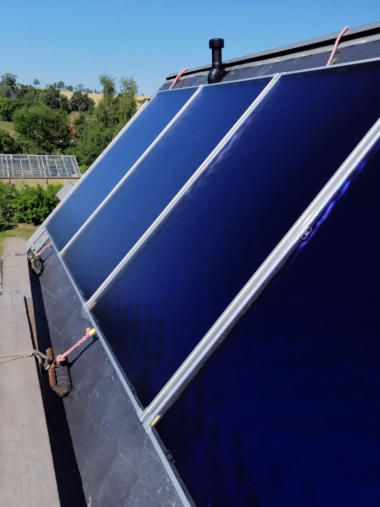 Der Schichtpufferspeicher SolvisMax übernahm den Platz des alten Warmwasserboilers und unterstützt nun die Heizung tatkräftig mit der Energie der Sonne. Die bestehende Erdwärmepumpe wurde wieder in das System integriert und übernimmt die Wärmeversorgung, wenn einmal nicht genug Sonnenenergie da ist.